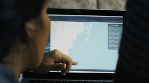 Izzy kindly explains the first feature to Ronald, his son, and the audience by pointing at blinking dots on a map of Miami. She gives an example of how traffic from Liberty City gets passed through computers in Miami Beach, Coral Gables, Overtown, and finally Homestead.
